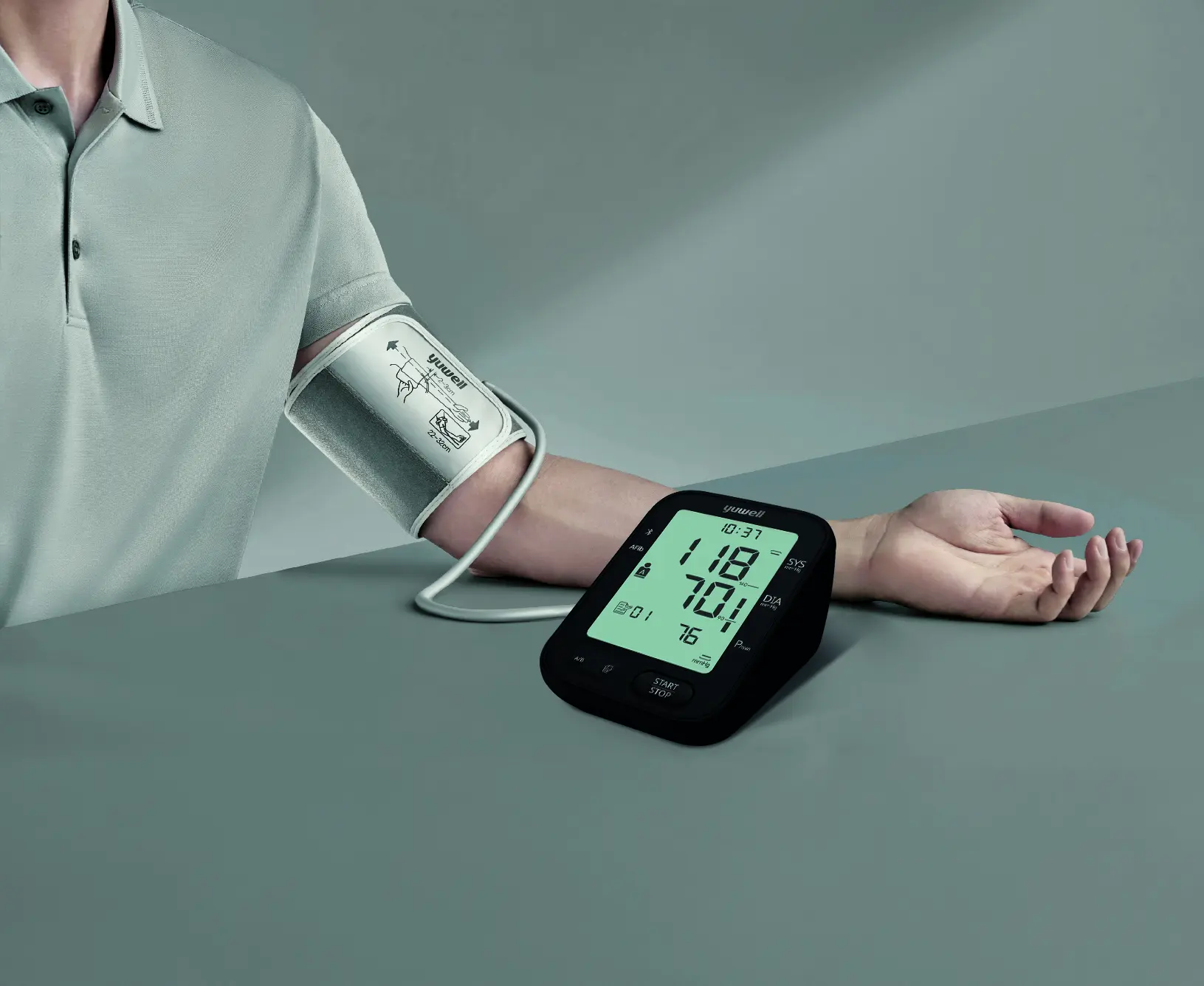 Brassard thermoformé 360° (22–45 cm), détecteurs d'erreurs (mouvement, positionnement) et moyenne AVG : Velio Pro vous aide à maintenir des mesures cohérentes, sans effort supplémentaire.